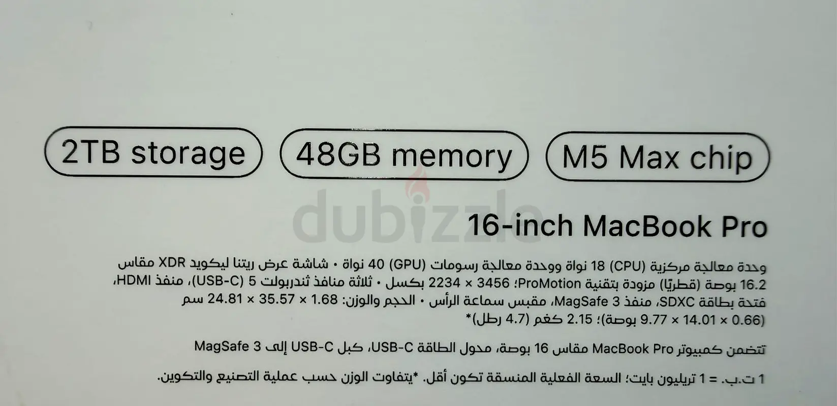 Brand New Sealed MacBook Pro 16" M5 Max | 48GB RAM | 2TB SSD | 40-Core GPU | 1 Year Apple Warranty | English-Arabic Keyboard