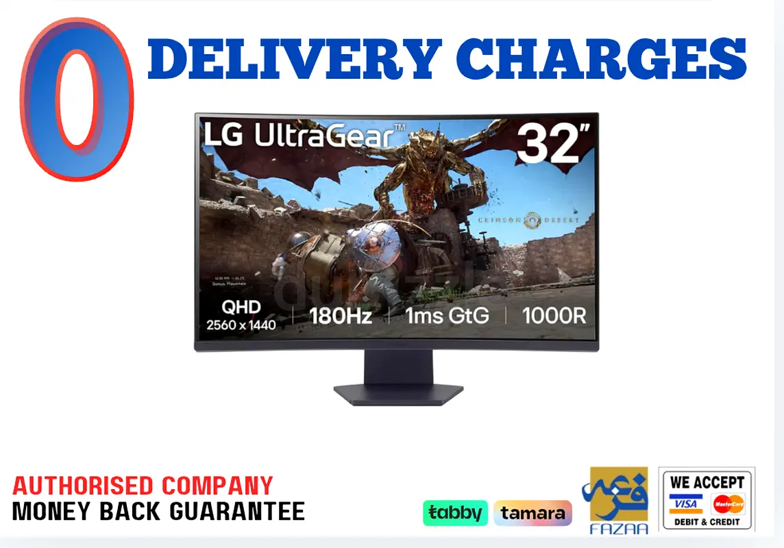 LG 32 inch Ultragear Curved Gaming Monitor QHD - 180Hz- 1 Year Warranty