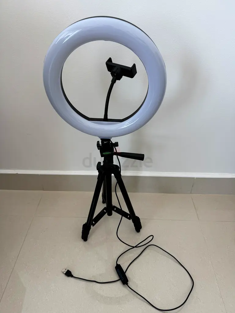 I’m selling my ring light with tripod and phone holder. I bought it about 1–6 months ago and it’s in excellent condition with light usage. The LED ring gives adjustable brightness and color temperature, the phone holder is centred and secure, and the tripod is stable with adjustable height and angle. It comes with the original USB power cable shown in the photo. No warranty applies. Ideal for content creation, video calls, or makeup tutorials.