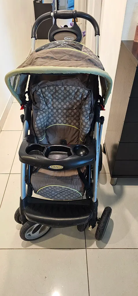 I’m selling my Graco stroller and car seat combo. I’ve used it lightly for about 2–5 years and it’s in flawless condition. The stroller has an extended canopy, ventilated seat, and a storage basket underneath. It features cup holders, shock absorption for a smoother ride, an adjustable handlebar, and a one-hand fold mechanism for easy collapse and storage. The seat is suitable for toddlers (ideal for ages 2–4 years). I’m including the car seat that fits the stroller frame as part of the combo. There are no visible stains or damage and all parts work as expected.