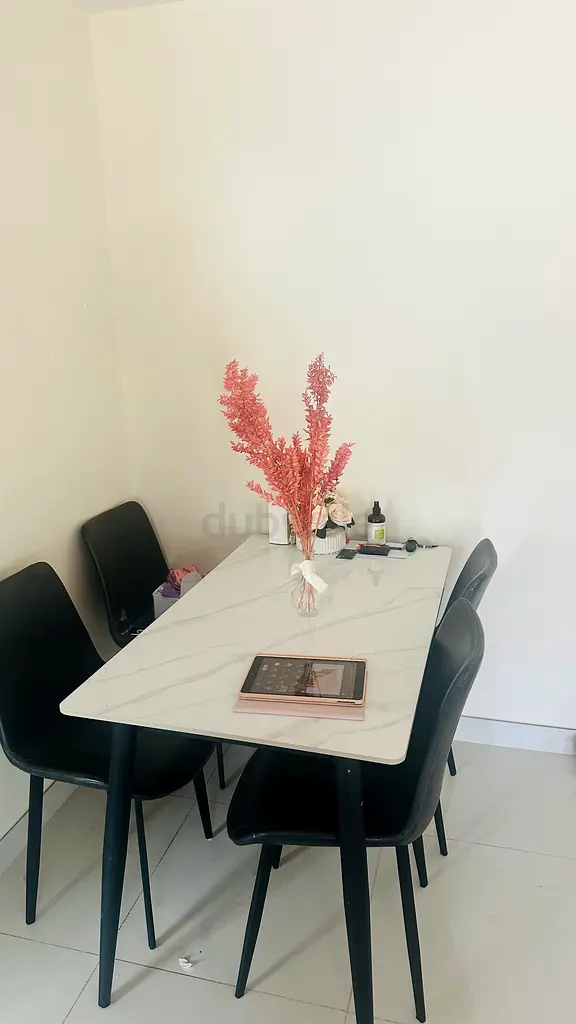 I’m selling a Home Box dining table set I bought about 6–12 months ago. It’s in excellent condition with light usage. The tabletop is rectangular, white with a marble-like finish, and seats four comfortably. The legs are black and sturdy; chairs are black and match the table well. No damages or stains — kept in a clean, smoke-free home. Selling because I’m rearranging the space.
