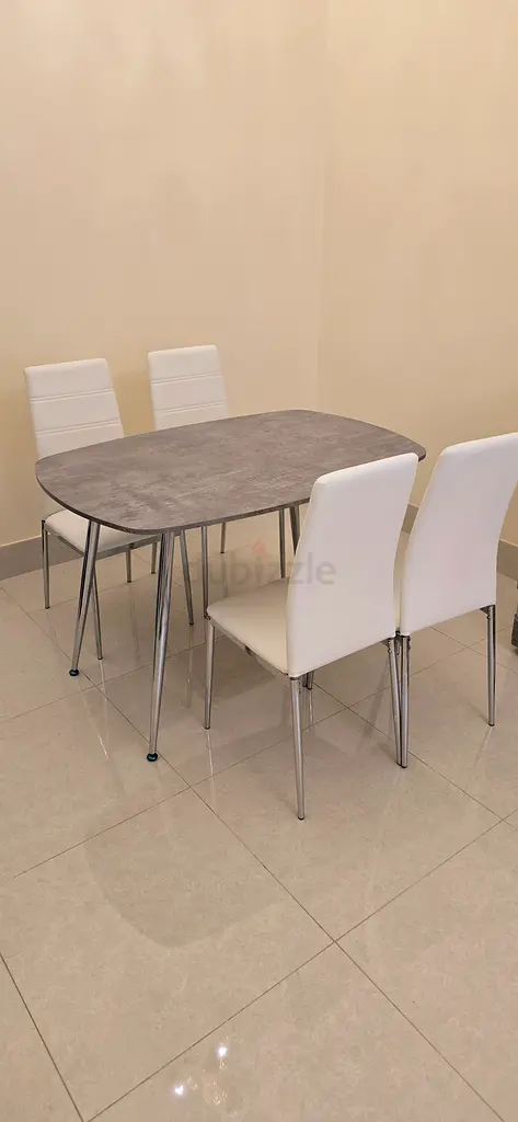 I’m selling an oval dining table with four white chairs from Home Centre. I bought it about 1–2 years ago and it’s in excellent condition — we used it once and then kept it in a spare room. The table has a light gray tabletop with slim metal legs, and the chairs have white molded seats with chrome legs that match the table’s frame. It’s a compact set suitable for a small dining area or kitchen and seats four comfortably.