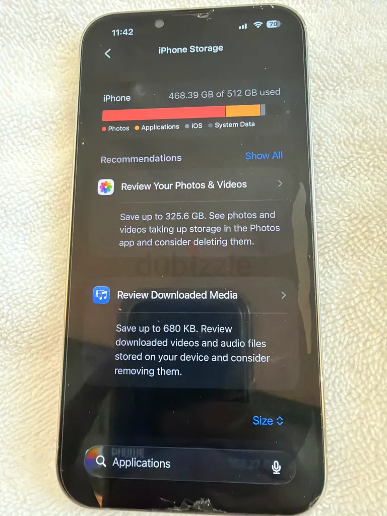 I am selling my iPhone 13 Pro, 1 year old, 512GB. It's a pre-owned unit and I am the first owner. The phone is white (listed as Space Gray in the title—actual device color is white) and powers on with iOS showing storage details. No damage at all ( only protection screen ) can move it or replace it.