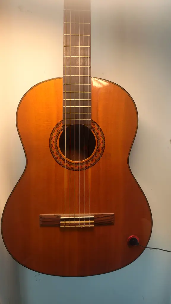 Yamaha C70 guitar, comes with floor stand, a wall hang and a piezo pickup if you want to plug it into an amplifier. Well maintained, good condition minimal scratches and dents. You can check it out or try it before purchase. I'm available anytime.