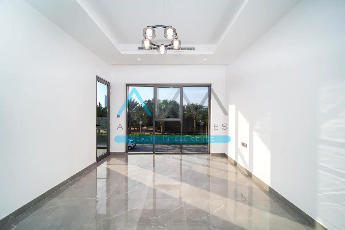 This 4-bedroom villa for rent is located in Jumeirah Village Circle (JVC) – District 14, Dubai. Spanning multiple levels with a modern staircase design, the home offers bright open-plan living spaces, generous glazing and several sliding doors connecting indoors to outdoor areas. Finishes are neutral, with a mix of glossy tiled and light wood-effect flooring, making the villa practical for a variety of interior styles.